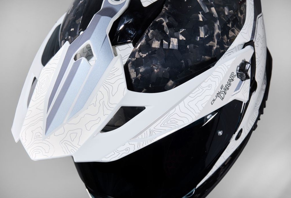 The Duale Dakar Forged Carbon helmet features a toolless quick-release peak visor, anti-scratch/pinlock ready face shield and internal dark smoke drop down visor that all work together to ensure a clear field of view and optimal versatility.