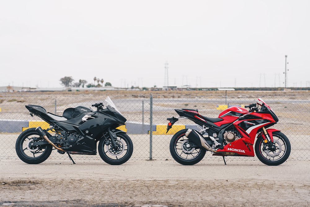 I rode the CBR through fits and spurts of rain at Buttonwillow Raceway and then, a few weeks later, on a postcard day of sunshine at Chuckwalla Valley Raceway. On both occasions, my friend Andrew tagged along with his Kawasaki Ninja 400 — more on that shortly.