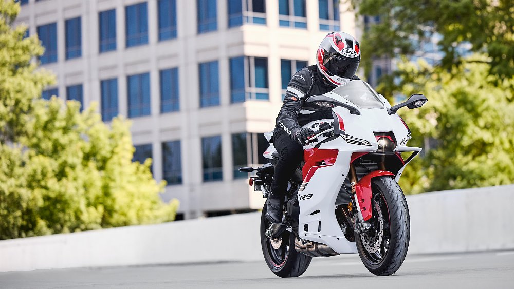 Many of the MT-09’s rider aids carry over, as well. Be it on public roads or a private course, IMU-aided features like traction control, slide control, cornering ABS, and lift/wheelie control prioritize safety. Conversely, a bi-directional quickshifter caters to performance. No matter the circumstances, five ride modes (Street, Sport, Rain, Track, and Custom) prepare the R9 for the current conditions.
