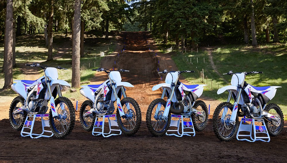 Team Green isn’t the only Japanese OEM observing a golden anniversary. Yamaha’s YZ motocrossers hit the circuit in 1974. Like Kawasaki, the Iwata firm turned to the ‘90s for its 50th Anniversary YZ125, YZ250, YZ250F, and YZ450F. Those influences are easy to see in the white plastics, purple and pink accents, and ‘90s-style graphics, especially when compared to the all-blue bodywork on the standard trim.