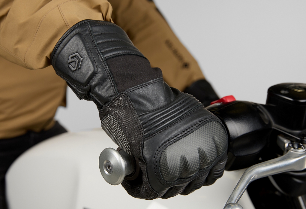 • Waterproof gauntlet-length touring / commuter glove with bold styling