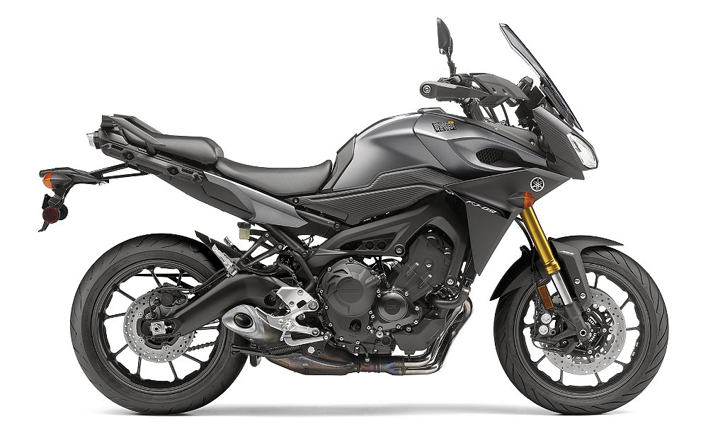 As expected, the FJ-09 shares the FZ-09 engine, frame, and swingarm. The FJ is made more distance-ready with a higher, more upright riding position, a windscreen, bar clamps that allow for 10 mm of adjustability forwards or backwards, and a height-adjustable seat.