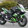 As with last year’s model — and this is a Kawi tradition that goes way back to the Meguro days — this twin has a 180-degree crank. (Most vertical twins have a 360-degree crank—the pistons move up and down together. In the case of the Ninja, one piston’s going up while the other’s going down.) This design is in some ways easier to balance; it suffers less pumping losses, and allows engineers to build a motor that’s happier at high rpm, although there’s an inevitable “rocking couple” imbalance. That’s not to be confused with a swinging couple, though you can get a buzz out of that, too.