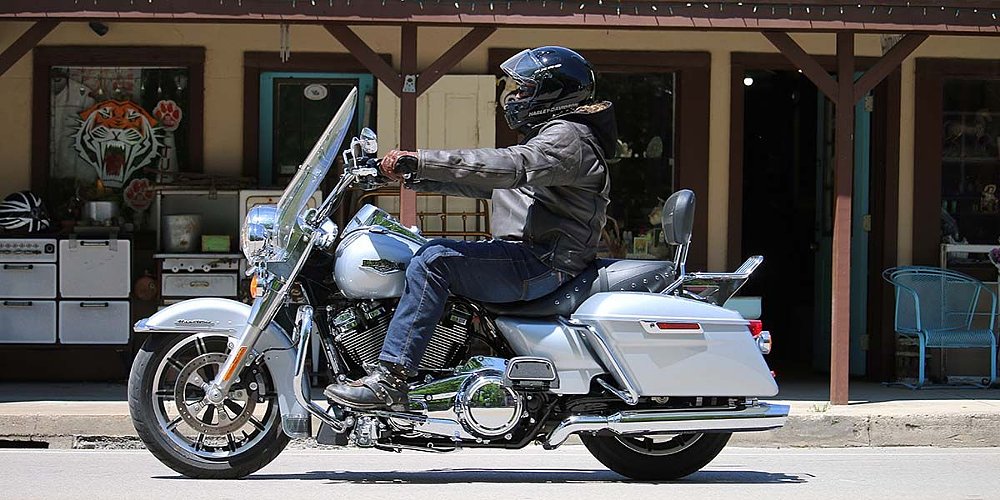 Since its introduction in 1994, the Road King has been a favorite in Harley-Davidson’s touring line. Signature traits include beefy fork tubes tucked in tight, a broad tank, plenty of power for two-up, an upright, all-day riding position, and healthy-sized saddlebags.