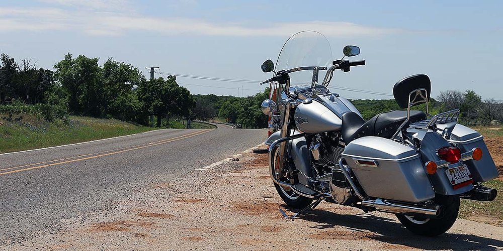 And while the Road King’s merits on long, straight stretches is undeniable, I couldn’t wait to get to the hill country to explore its lean angles. Outside of Burnet, we ventured off the beaten path on ranch and market roads as we swung by Buchanan Lake and continued south. The leader of our Handbuilt-bound pack set a spirited pace aboard his Suzuki V-Strom 1000XT, so I pushed the big King hard to keep him in sight. With a laden seat height of 26.3 inches, the Road King’s center of gravity is fairly low which helps the bike transition fluidly considering its size. At 32 degrees, the floorboards are high enough so I scraped only on the tightest turns. Thanks to the placement of the bars, corner entry is point-and-shoot, and its stout suspension keeps the bike composed and predictable at lean. There were a few instances where the front end would have benefitted from a bit more stiffness, primarily when I squared broken surfaces and the fork bottomed. The 2019 Road King has two large rotors and dual 4-piston fixed calipers on the front and it only takes a little tug to scrub off speed when entering corners. Squeeze the lever tight and the bite of the Brembos is strong and even. The motorcycle features Harley’s Reflex Linked Brembo braking system which activates the rear as well with more aggressive application. The bike does not come with ABS standard but can be added for an additional $795. Without it, it doesn’t take much pressure to get the back brake to lock up.