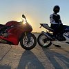 Ducati Panigale V4 and Suzuki GSX-R1000 at sunrise