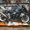 working on a Suzuki GSX-R1000 in a motel parking lot