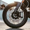 The wheels are the same sizes, though the Rally gets different aluminum wheels with stainless steel spokes and red pinstripes around the rim. The tires are Pirelli Scorpion Rally STRs to match the scrambler looks. Seat height is about the same, at 33.1 inches, and since the tank hasn't changed, you still can only carry 3.4 gallons of fuel.