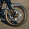 Incidentally, if and when you come upon some curves in the road, you may want to know that the Harley teams on site confirmed that the ST moniker does stand for Sport Touring. If you look closely enough, some “sport” character is just peeking out from under the mountain of heritage and touring that makes up most of a Road Glide’s or Street Glide’s aura. The extra 0.9 inches of rear wheel travel represents an increase of 43 percent, and even though Harley didn’t make any claims about how much farther the bikes can lean over, it makes a difference. It felt like an extra few degrees of lean angle were available before the floorboards touched down.