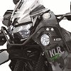 The frame hasn't changed too much, although there's a new swingarm and a burlier swingarm pivot shaft. The KLR's soft suspension has been overhauled with stiffer springs, stronger wheels, beefier brake discs, and larger axle shafts.