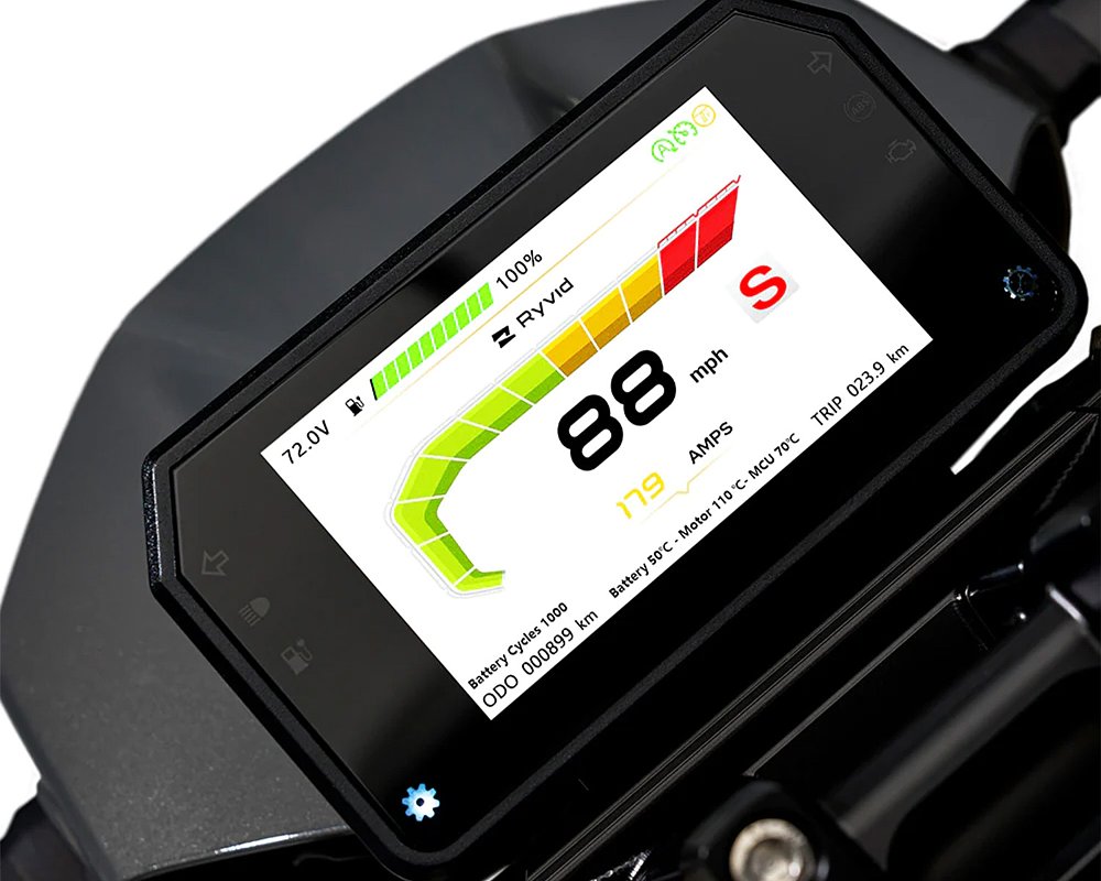 The model’s output matches its stature, más o menos. Ryvid rates it at 7.5 kW (10 horsepower) — with a peak of 14 kW (20 horsepower) — and 53 foot-pounds of torque. The real kicker is the Anthem’s 75+ mph top speed, which is a godsend for commuters connecting point A and point B via the freeway. Now, you’re probably thinking, “That’s fascinating and all, but get to the important stuff already.”