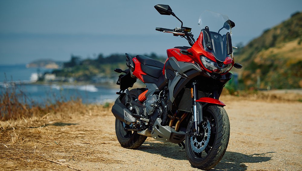 Other features include LED lighting, USB charging outlets, and a tire-pressure monitoring system, but the seven-inch, full-color TFT display takes top billing. Manufacturers often reserve high-tech gadgetry of this ilk for bikes in the five-figure price range. I hope the blind-spot detection and adjustable windscreen features I didn't get to test work well, because the TFT panel offered an imperfect user experience.
