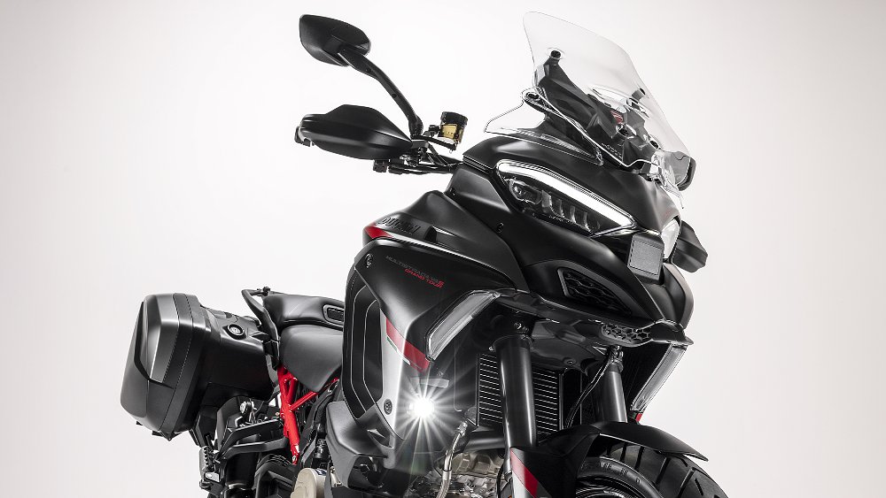 The Grand Tour caters to the rider's comfort even before you start moving. Or after you stop. Lifting the mighty Multi off the side stand is made less straining by Ducati’s Easy Lift function, which relaxes the suspension settings from the key-on position. When the bike rolls to a stop, the Minimum Preload setting function reduces preload, thereby lowering the seat height, to make riders of all inseams (but especially shorter ones) feel more sure-footed.