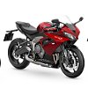 Much of the braking duties fall to Triumph-branded four-piston calipers, 310 mm discs, and braided lines up front. Further aft, a 220 mm rotor and single-pot binder provide additional stopping power. Both ends benefit from ABS monitoring. Lastly, Triumph wraps the model’s five-spoke aluminum wheels in Michelin Power 6 tires, readying it for both dry and wet conditions.
