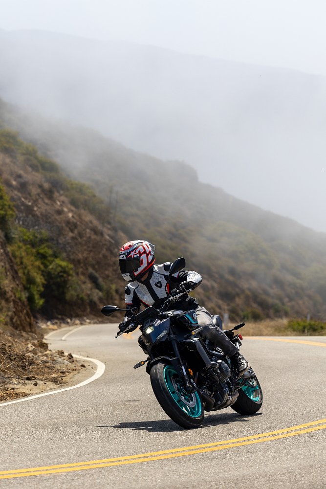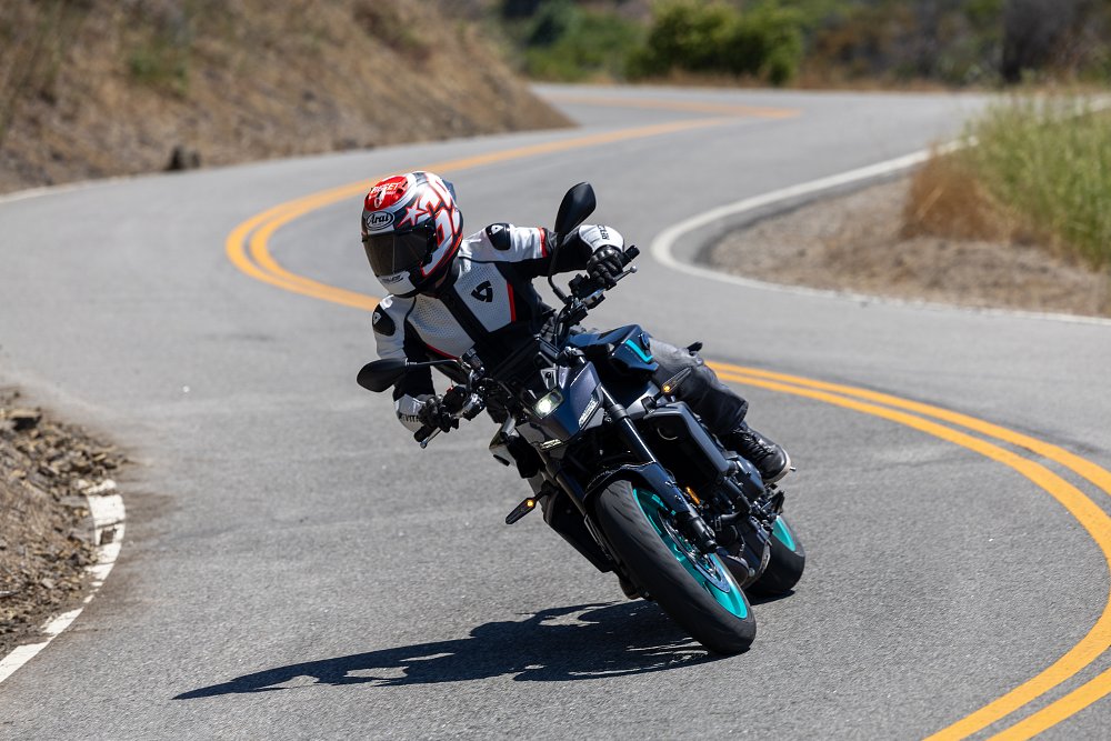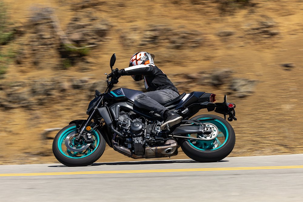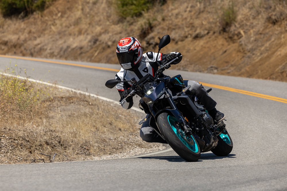 There’s less dive at the front end and less squat in the rear. Overall, the certified hooligan machine is just more even-keeled. For example, when testing the previous-gen 09, I often wheelied out of one particular corner along my testing route. With a sharp rise at the corner exit, hard acceleration lofted the front wheel into the air without fail. Time after time, I couldn’t replicate those results on the 2024 model. I’ll be clear. That’s a good thing. I don’t want to wheelie there, and the MT abides.
