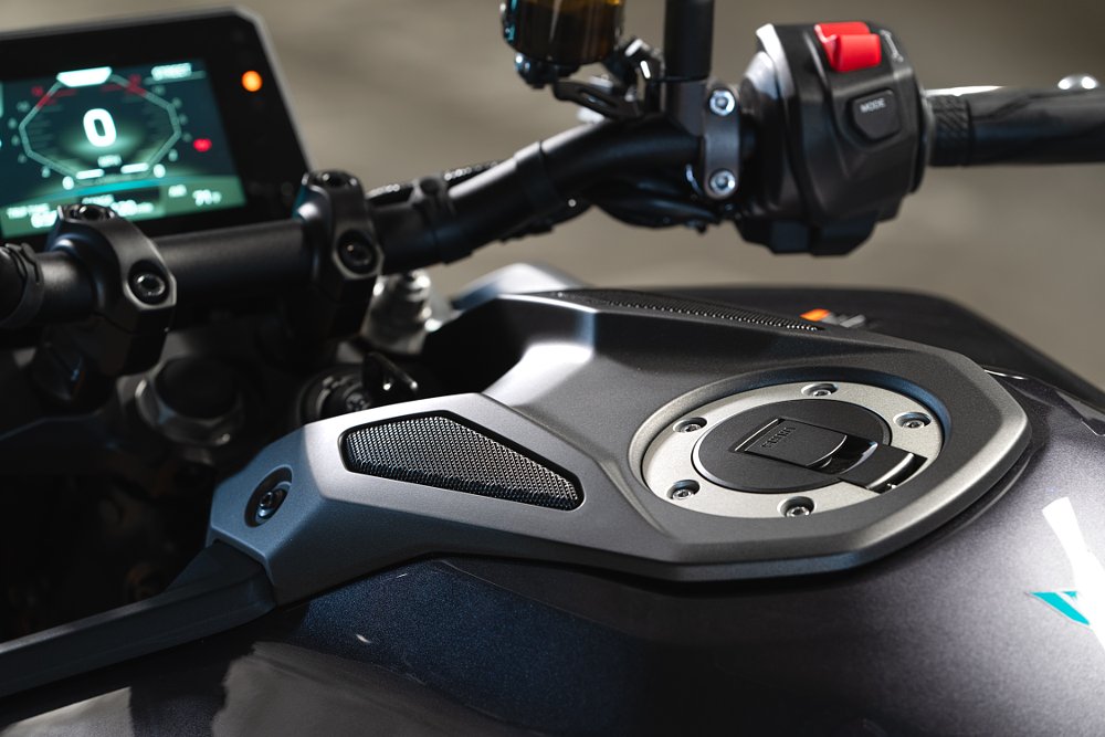 Like all new bikes, the MT-09 has to contend with today’s stringent noise emissions standards. Seldom do those noise limits align with the customer’s expectations. To satisfy both parties, the MT’s new intake system directs more induction sound into the cockpit. Air enters through the side scoops at the tank shoulders and into the airbox’s two-duct airbox. Along the way, intake sound channels to the rider through the new Acoustic Amplifier Grilles. Or so Yamaha claims. Without a back-to-back comparison with the outgoing model, it’s difficult to tell the difference.