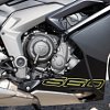 Triumph bases the Daytona’s powerplant on the 660 cc inline triple found in the Trident 660 and Tiger 660 Sport, but significant changes spice up the engine in sport bike form. The cylinder heads tout larger exhaust valves and higher-lift cams. A low-friction treatment coats the pistons and a new crankshaft increases gear width. To force more air and fuel into the combustion chambers, Triumph employs a larger airbox and three throttle bodies.