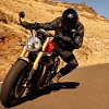 The base model isn’t just different from the RS, it’s also different from the past-generation Speed Twin. Its handlebar is now higher and further forward. The Marzocchi rear shocks now feature remote reservoirs and preload adjustability. Even the tires aren’t the same, with Metzeler Sportec M9RRs spooned onto the "turbine" style wheels.