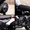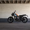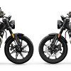The fork is now an inverted unit provided by Marzocchi. The Italian brand also supplies the piggyback rear shocks, which now connect to a “stiffer and lighter aluminum swingarm.” A larger 320 mm front brake rotor enhances stopping power (according to Triumph) while the model’s new wheels roll on Michelin Road Classic tires.