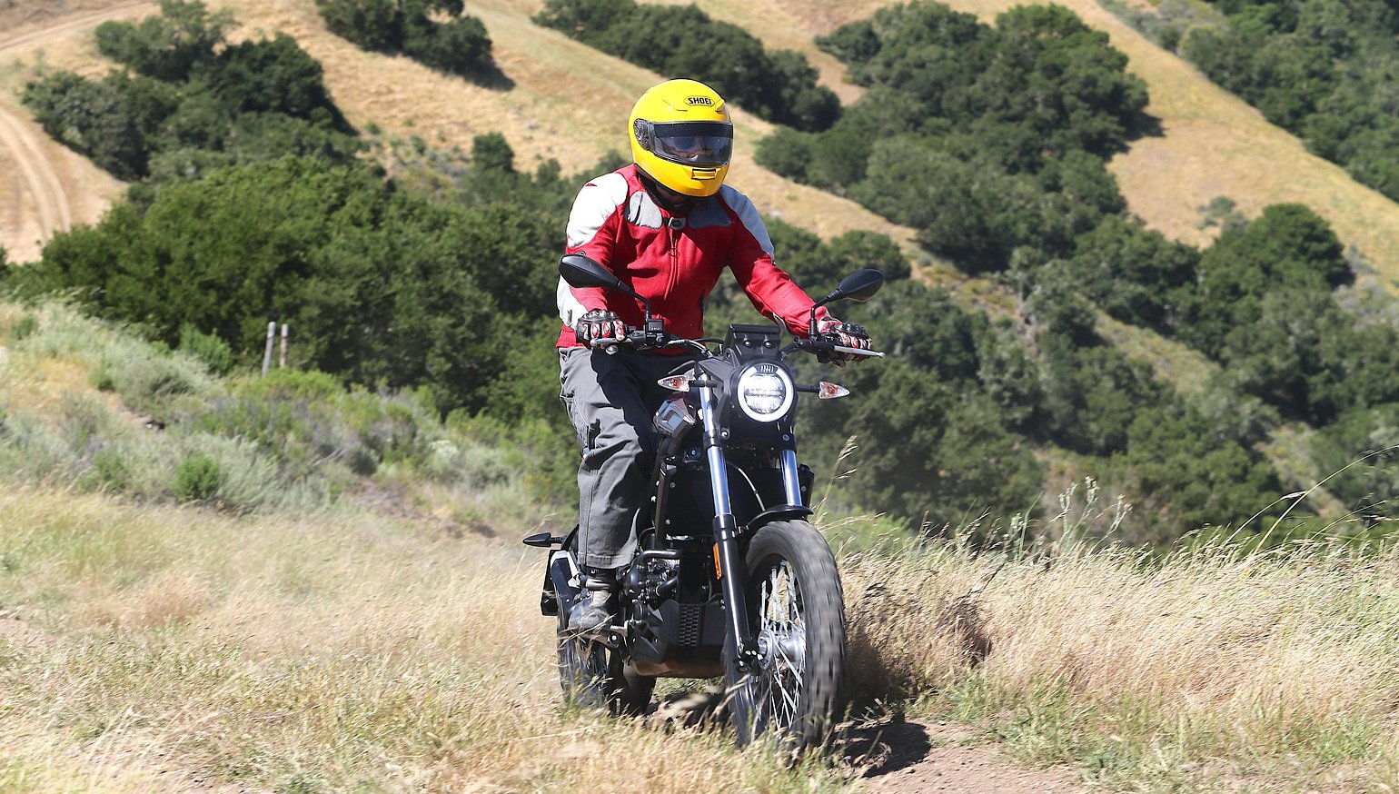The Nissin front brake is linear and not too sensitive, though braking dive of the non-adjustable fork discourages adventurous cornering on the road. As do the Shinko Adventure Trail block-pattern tires. The short but chunky knobs work well enough all around, but on the road the front gets uncertain with cornering speed. The tires are listed as 40/60 street/dirt. Given the X's recreational focus, and the likelihood most riders will spend more time on the street, something closer to 70/30 will likely be a popular choice at replacement time.