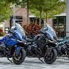 Standard features include the radar-informed Active Cruise Control, Frontal Collision Warning, and Lane Change Warning. That means the cruise control will automatically slow down or speed up the motorcycle to maintain the desired distance between you and the vehicle ahead. Forward Collision Warning will not only flash a warning if you're closing too fast on something ahead but will also apply braking force, if needed. And Lane Change Warning means you have those little yellow triangles on the mirrors alerting you to vehicles in your proximity.