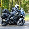 Meanwhile, when it came time to power out of those corners, I was impressed at what a 1,300 cc two-cylinder engine can do. The ShiftCam variable valve timing does its job and provides a wide power band. The torque peaks at 6,500 rpm but even if you're dipping a little below 5,000 rpm, the engine pulls you out of the corner with a smooth shove in the back. Meanwhile, later in my trip home when I was out on the Interstate and burning up miles, the RT just loped along. Sixth gear at 4,000 rpm yields an indicated 80 mph. I averaged about 43 miles per gallon in mixed riding, which means the 6.3-gallon tank easily surpasses the 200-mile mark in range that many touring riders demand.