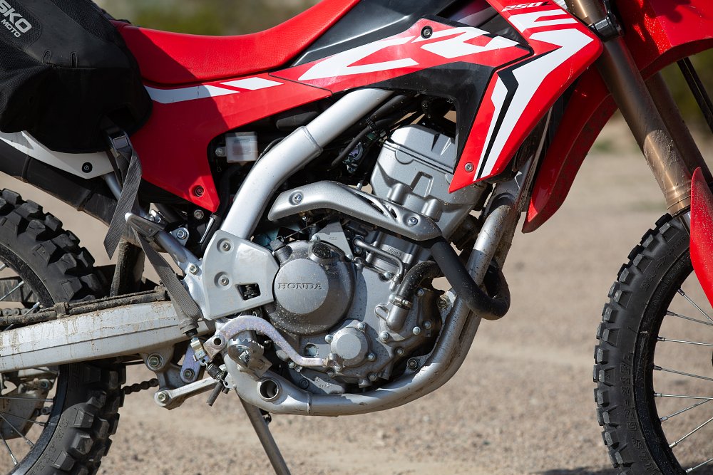 Perhaps gluteal relief is part of the reason that Honda only gives the bike a 2.1-gallon fuel tank. Even while returning an efficient 55 to 60 mpg, the fuel light consistently came on before I hit 100 miles. If you have your heart set on a CRF but range and highway comfort are priorities, I would certainly suggest looking at the CRF250L Rally. The Dakar-inspired model adds a windscreen and larger gas tank for another $500 and 25 pounds of curb weight.