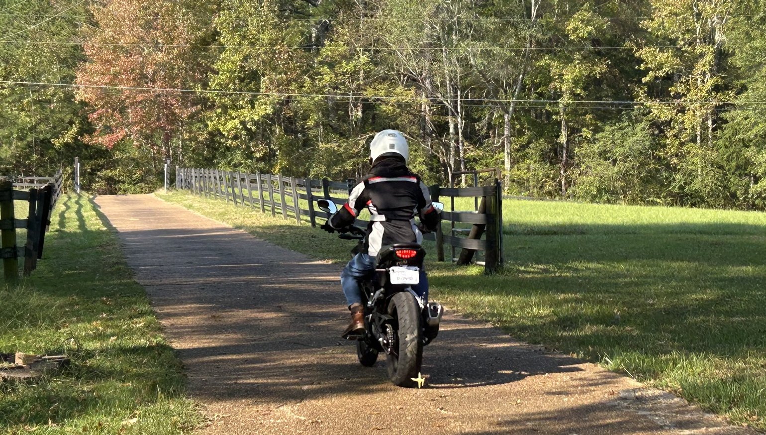 The neighbor's horses didn't appreciate our early morning presence, and thundered off across the pasture, presumably in search of better company. I zipped my Alpinestars jacket, as her Bluetooth headset connected to mine with a beep. "Head and eyes up, right?" I asked her. "Right," came the reply in my headset, although I was pretty sure I could hear her eyes rolling in her helmet, too.