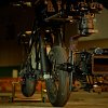 The Agile bike still has all of the lights and signals necessary for it to be street legal, with some James Bond updates. The headlight and taillight can be shut off manually with switches on the handlebar, so that the bike can film in the dark without disturbing the image. As soon as the director cuts the shot, any lights that were off can be flicked on. Power for the gimbal and camera is provided by DJI TB50 batteries that have been wired into a cradle on the bike — dual packs connected to the same system allows one battery each to be swapped without losing power to the system.
