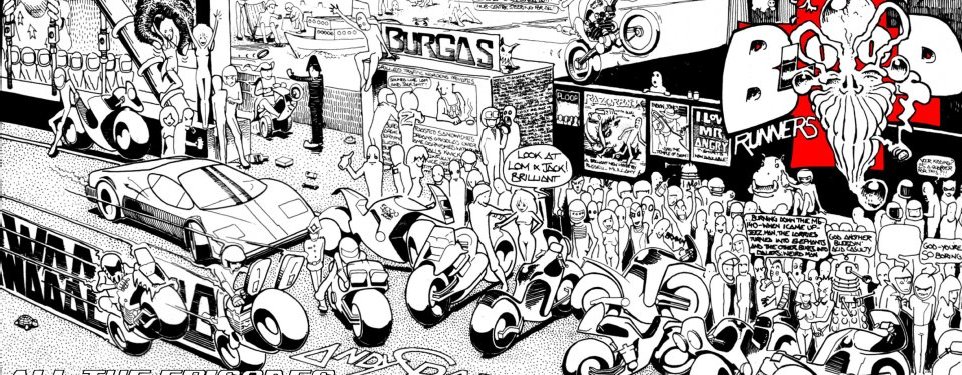 Nearly 35 years later, Sparrow’s comics are well worth a second look (or maybe a first for most of us Yanks). Bloodrunners is very possibly the first sighting of streetfighters, almost certainly the first in print. There’s no telling if Sparrow invented the style altogether in his drawings, but he was certainly a prime mover in early streetfighter scene.