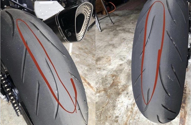 Antenna tread is a common feature on motorcycle tires, though some models have a more apparent line than others. Photo by Max Breemer.