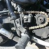 As you rotate the rear wheel, pay attention to your drive chain or belt. (If you have a shafty and don’t know how old the gear oil is, now’s the time to change it!) First, look for any binding, seized links, or excessive chain and sprocket wear that would indicate it’s time for replacement. If all looks well, clean your chain with solvent and brush, then lubricate it. Check chain alignment with an alignment tool (don’t just trust the hatch marks on your axle blocks or swingarm, if you have them) and measure tension with a gauge. Your manual will provide specs for tension and wear, so you can measure to see if the chain needs to be replaced.