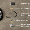 If you find the kit is lacking something for your bike, add it, and don’t be shy about including other useful items if there’s room. I supplemented a metric Cruz Tools kit with an assortment of spare hardware, extra fuses, some zip ties and safety wire for securing stuff, a razor blade, and nitrile gloves for keeping clean during roadside repairs.