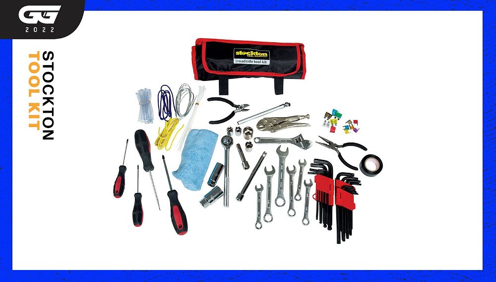 The Stockton Tool Kit comes as a classic “tool roll” and is available in both standard and metric versions. Although this isn’t a tool set for your garage, it's a portable roll that covers a lot of the basics of what you might need for a roadside repair. It comes with a ⅜-inch ratchet, extensions and five of the most common sockets, an adjustable wrench, ball Allen wrenches, combination wrenches, vise grips, a set of needle-nose pliers, wire cutters and an assortment of screwdrivers. In addition to tools, it also includes some very handy consumables like wire, electrical tape, fuses, extra fuel line and of course the ever-important zip ties. With a price tag of under $40, it’s cheap peace of mind to have on your bike.