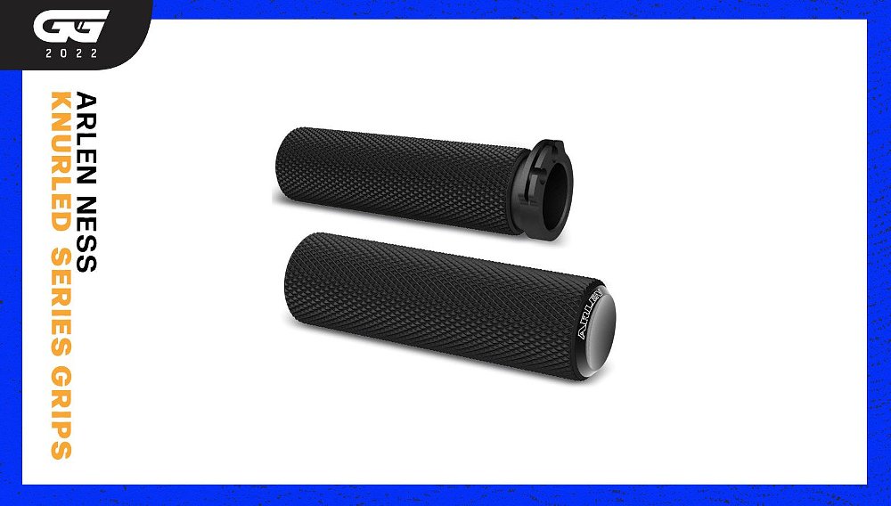 The one-inch diameter grips are made from anodized aluminum and rubber, with the billet end cap featuring the laser-engraved Arlen Ness logo. The functionality of the knurled rubber surface is tactile without feeling like the grip is too bulky and gives you the feedback from your bike you need to stay in control. The anodized end caps come in a variety of colors to add that custom touch that Ness is known for. The grips are available in both throttle-by-wire and cable-driven fitments.