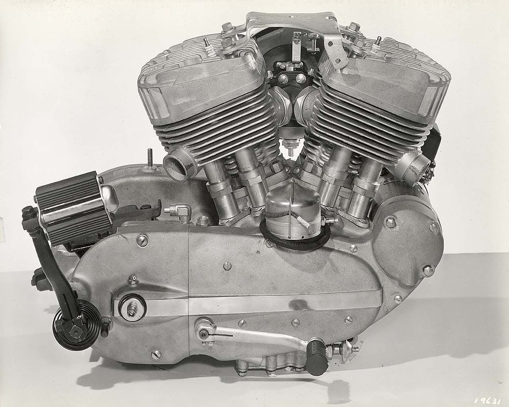 Next we can move on to engines. "Flathead" is the slang term for an engine that has the valves alongside the cylinder. Another term for this is "side-valve." Automotive engines of this type are referred to as flatheads. The flathead motor began production in 1929 and the final version left the factory in 1973. That's a production run of a whopping 44 years! The "Knucklehead" engine gets its name from the appearance of the rocker assemblies. They look like your knuckles when you make a fist. These where produced from 1936 to 1947. An upside down dishpan is what the valve covers of a Panhead resemble. This style motor was made 1948 to 1965. An "Ironhead" is the nickname of a Sportster engine built between 1957 & 1985. The "Shovelhead" name is supposed to have originated from looking like a folding military shovel. The Shovelheads production run started in 1966 and lasted to 1984. The next engine has two common names, Evolution (Evo for short) or "Blockhead." The cylinders are squarer than a Shovel's, thus the name Blockhead. "Evolution" is what Harley termed its engine program after the buy back from AMF. This production run was 1984-1999. The final engine built from '99 on, got bigger cooling fins, which gives it the moniker "Fathead," it is more commonly referred to as a "Twin-Cam" (TC or TC88).