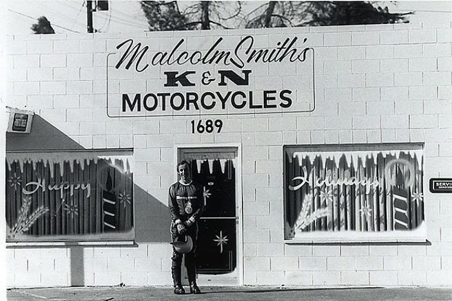 "Malcolm! The Autobiography," written by Malcom Smith with Mitch Boehm, gives you the full story in the clearest detail from cover to cover. It is a large, coffee-table-style hardcover book, so it does not travel well, but its size provides a fitting display of a collection of photos from Malcolm’s life. The photo of him on the cover, racing across the desert on his Husky at face-warping speed, is enough to make us question his sanity.