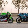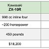 Over the course of any given lap, the ZX-10R was faster in every measurable category — its lap time was around 15 seconds quicker and maximum speed about 40 mph higher — none of which is surprising. Compared to the Ninja 400, the ZX-10R’s 999 cc engine is two and a half times larger and offers four times the horsepower, while the whole machine is only about 23 percent heavier with a full fuel tank.