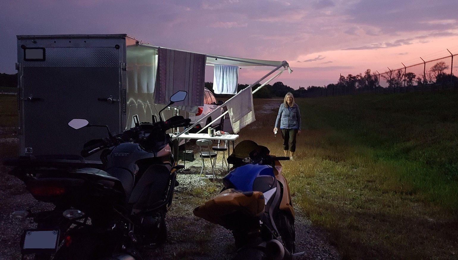 When my partner, Peter, added track days to his riding repertoire, he hauled his 2008 Suzuki GSX-R750 on an open trailer and pitched a tent on the tarmac beside it in the pits. Not the most comfortable sleeping option, particularly the trek to the restroom in the middle of the night, sometimes in the rain.