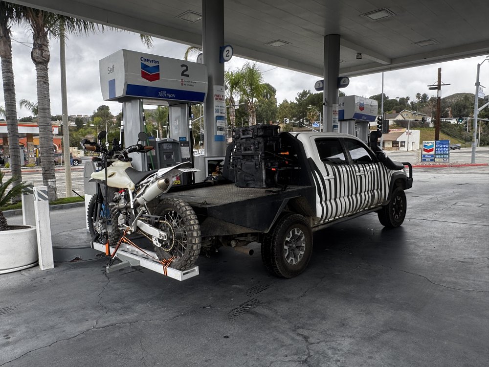 Thanks to a helpful hand from a KTM rider, I was able to push the Ibex a half mile up the trail. The thing is, I was still five miles from the main road. It’d be an uphill battle the whole way back, too. At that point, it was clear. It was time to start hiking. After trudging up the trail for two miles, a zebra-striped Tacoma rolled alongside.