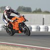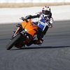 From the video, I know I was in the middle of the right-handed Turn 10 at the Sevilla Circuit, in third gear, traveling at about 65 mph. I had the 990 RC R in Track riding mode, with traction control set to level 2 of 9. It was a stellar afternoon in the middle of Spain, with bright sunshine and a warm track. I could see former KTM pro racer Chris Fillmore up ahead, riding at about half pace and clearly slowing down from cutting fast laps. I did the same, relaxing from full attack in the preceding left-hand corner, sitting up a little and thumbing the horn to harass my friend.