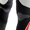 Dainese's solution was to eliminate the thread altogether. Unfortunately, Dainese has not revealed how they are attaching the sliders. But the byproduct of that, in addition to eliminating a weak point of stitching, is that it allowed them to think about ways to increase the knee comfort without sacrificing protection. The leather accordion panel, which typically resides above the knee, is now lower and over the top of the knee, for more comfort and mobility.