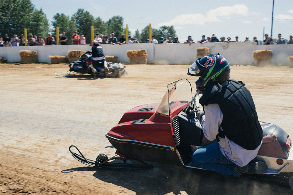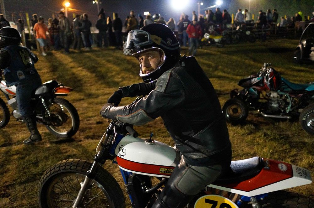 We arrived at the track on Saturday afternoon just as the professional races began. We set up our gear near a small city of Poler tents and made our way to the track to check out the professionals. Most of the pros were riding Honda CRF450Xs, and watching them in person was a great education in how the sport is supposed to look. Flat track racing is incredibly fun and very accessible for the common man, given the nature of the bikes and track. So much so, that it often looks almost easy. Watching guys slide around the track as intended gave us a frame of reference for the weirdness to come.