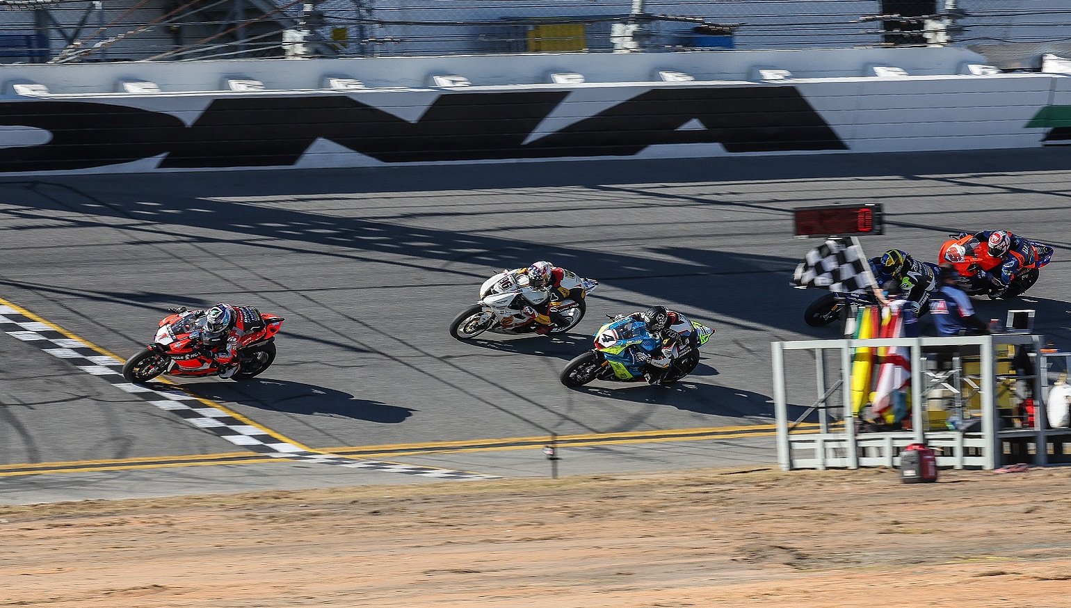 Herrin, the 2022 MotoAmerica Supersport champion, qualified on pole on his Warhorse HSBK Racing Ducati NYC Panigale V2. Typical Daytona racing took place early in the race, with eight riders in the lead group as no one could break away from the pack due to the importance of the draft on the high banks, where the Supersport bikes were hitting speeds around 180 mph.