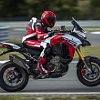 Taking advantage of the trim’s sporting nature, Ducati shifts the footpegs higher and rearward to maximize lean angle, while the rigid-mounted handlebar and softer grips grant more feel and feedback. The RS also gains Pirelli’s track-worthy Diablo Rosso IV Corsa tires and eye-catching, red-painted Brembo Stylema calipers.