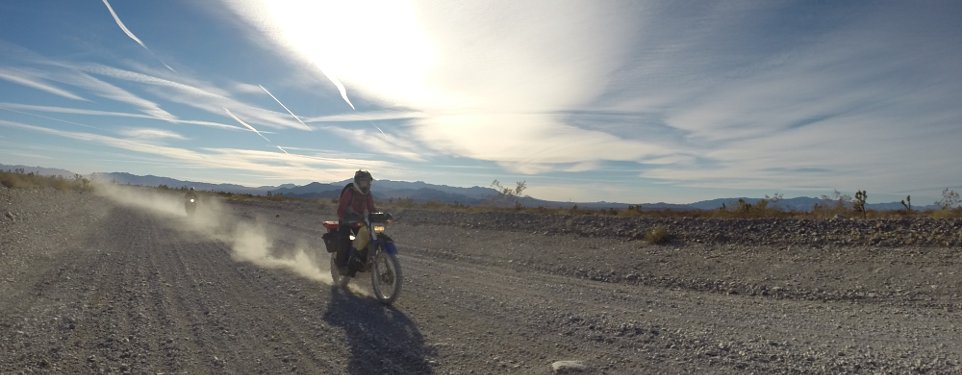 Exiting Palmdale, the start of the LBV ride was demanding — for a novice. The temperature outside was increasing while my internal temp quickly followed suit. And, though I couldn't feel the sweat pouring out of me, I knew it was there. Blinded by the slate-colored dust clouds that blanketed the path ahead, I became ever more focused (and slightly more concerned). My upper body worked hard to control the whims of my XT225’s mediocre suspension. As soon as I'd change gears and get comfortable, the ground would go loose, swing my front end and, occasionally, make my stomach jump into my throat.