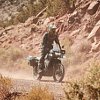 Kawasaki KLR650 rider on a dirt desert road