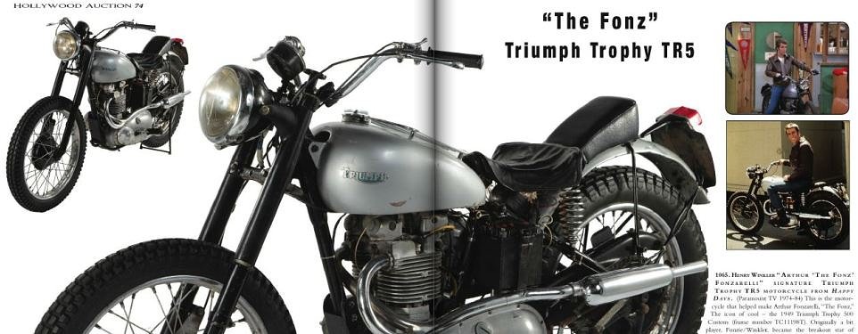 Finally, we have another Triumph from TV fame: One of the motorcycles ridden by Arthur “Fonzie” Fonzarelli in the popular 1970s sitcom "Happy Days." Are you cool enough to own the bike ridden by the Fonz? OK, Henry Winkler couldn’t actually ride a motorcycle, it seems, so it was just wheeled around, mostly.