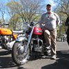 When I arrived, I worked my way through the growing sea of classic bikes (there were modern bikes, too, but they were parked further back, giving the place of honor to the truly vintage bikes). I eventually found a small T-shirt stand where the club does a little business to support this free event. There, I found current club President George Roetenberg and asked him about that motto.