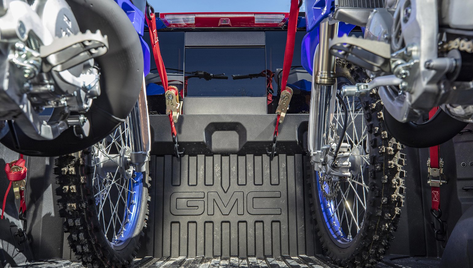 Regardless of your take on trucks like the GMC Sierra, it’s always nice to see other industries considering the needs of motorcyclists who need to move motorcycles without riding them, whether transporting dirt bikes to the trail, moving a disabled bike to the shop or whatever.